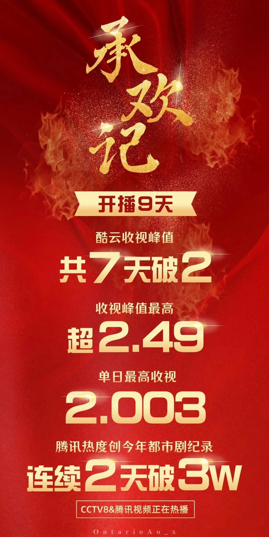 杨紫主演承欢记个人角色麦承欢成为酷云首位破19000的现代剧角色。承欢记峰值收视率也破了2.49[举手]