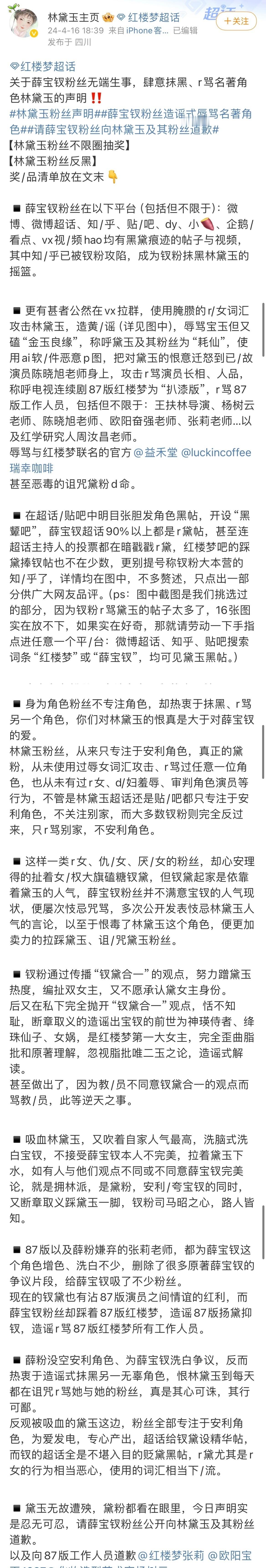 林黛玉粉丝开始维权抽奖了,指责薛宝衩粉丝无端生事[允悲]