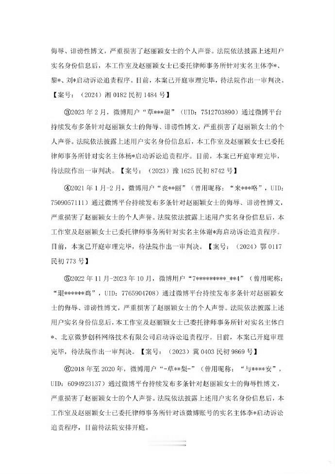 #赵丽颖工作室公布告黑进展# 赵丽颖工作室发布维权声明,已判决的时间跨度从201