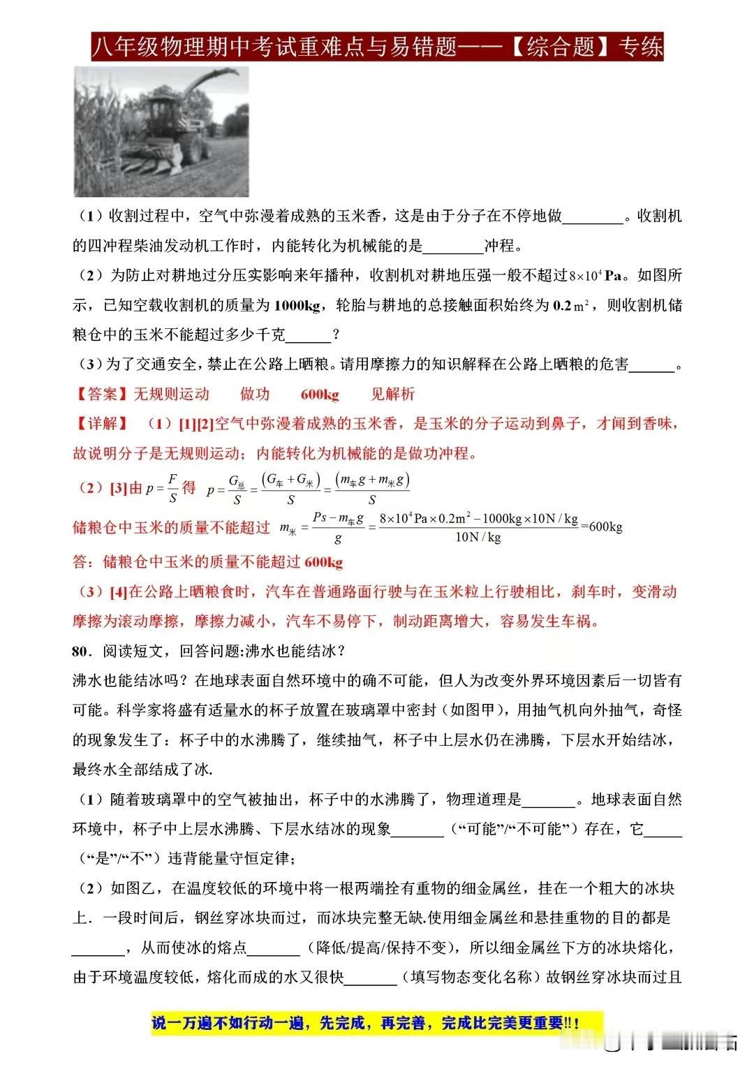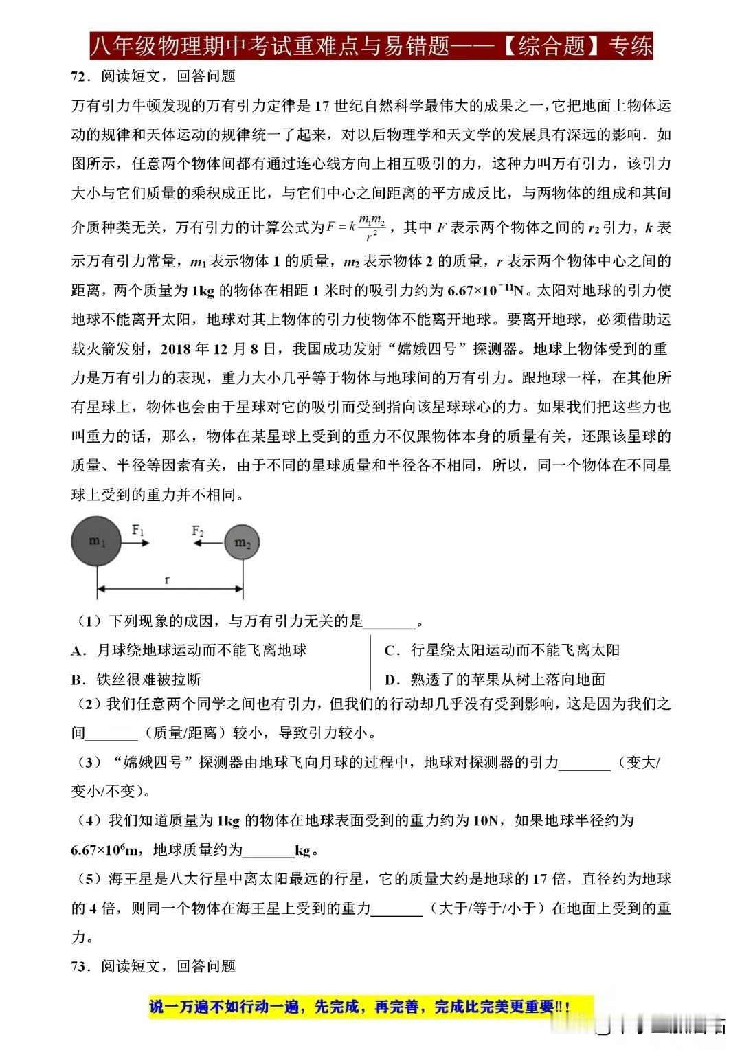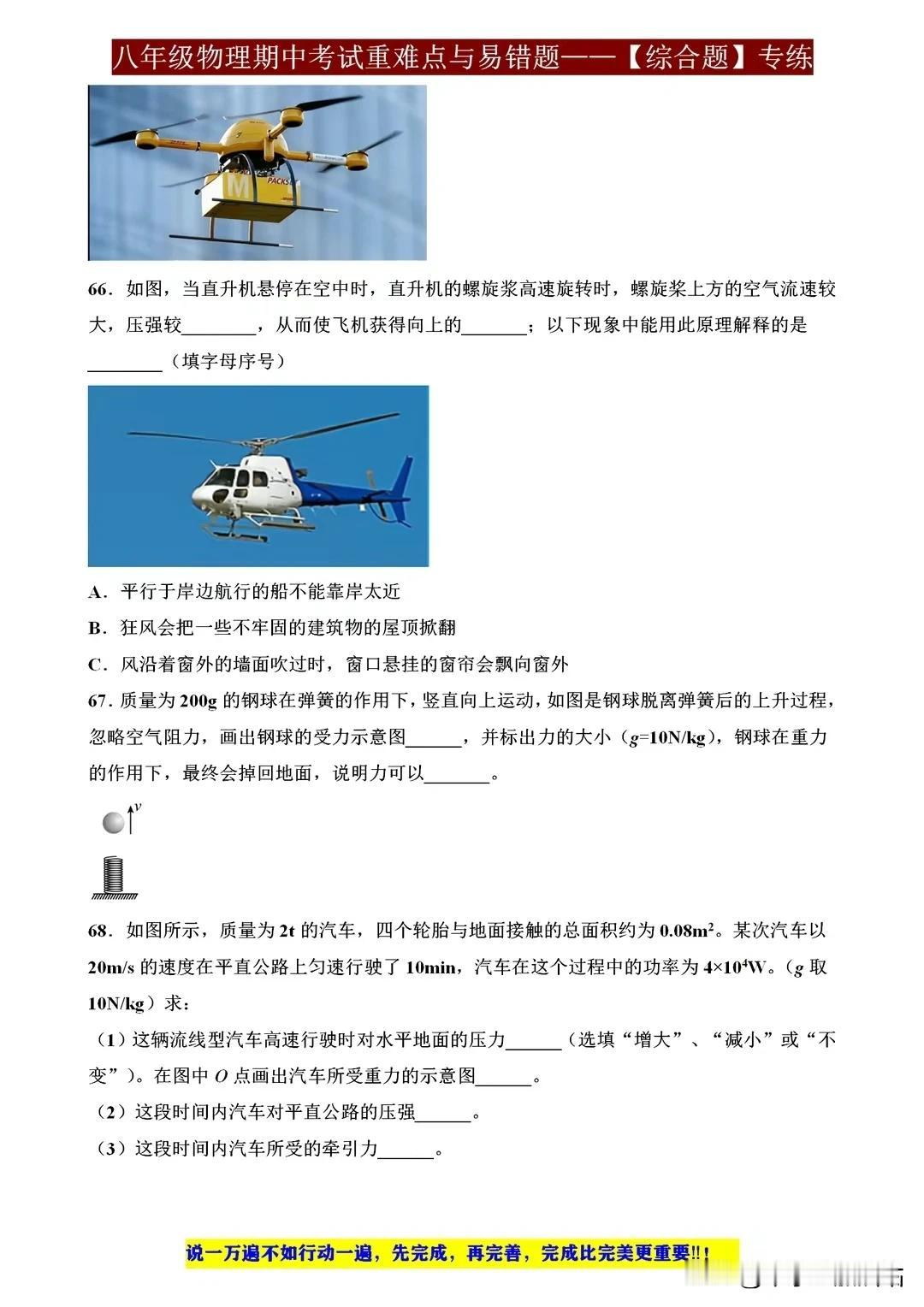 八年级物理期中考试重难点与易错题,这些才是拉开差距的关键! 八年级物理期中考试,重难点与易错题是拉开差距的关键。重力、浮力、压强等概念需深入理解,电路分析、光学原理应用也不容忽视。易错题往往藏在细节之中,如单位换算、公式应用等,需细心审题,避免失误。 要想在考试中脱颖而出,除了掌握基础知识,还需多做练习,尤其针对重难点和易错题进行强化训练。只有扎实基础,才能应对各种题型,取得优异成绩。 【左上角,点击我的“头像”,进入主页,有电子版获取方式】