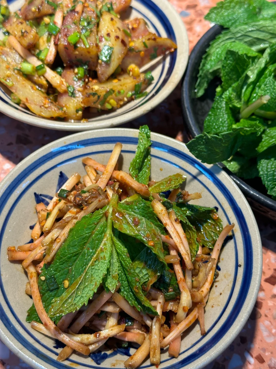 “水性杨花”、各种菌菇、姜柄瓜、鲜花米布、奶白酒、野菜粑粑、炸乳….都好吃! 从坐下到结账嘴巴就没空过!!!