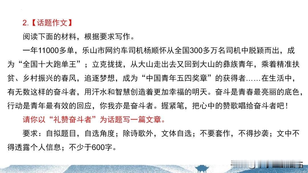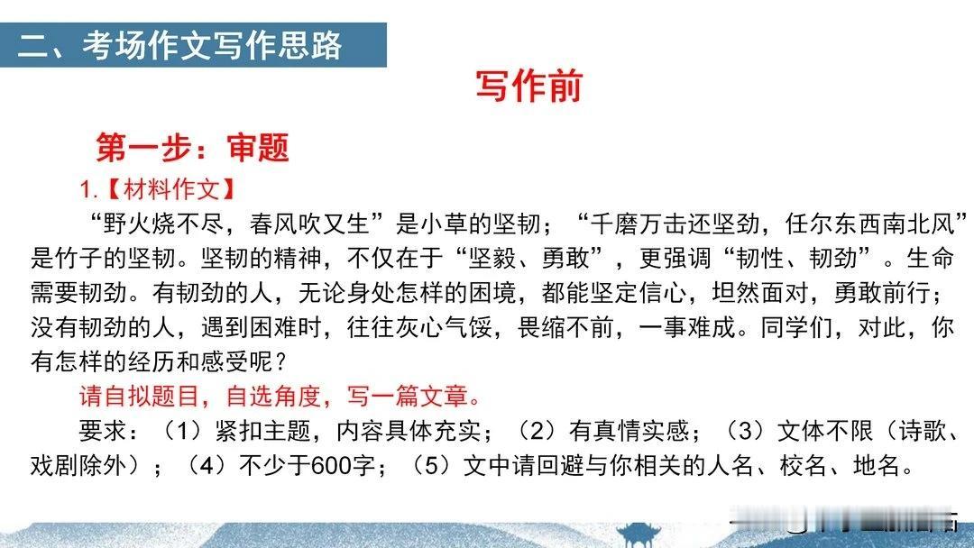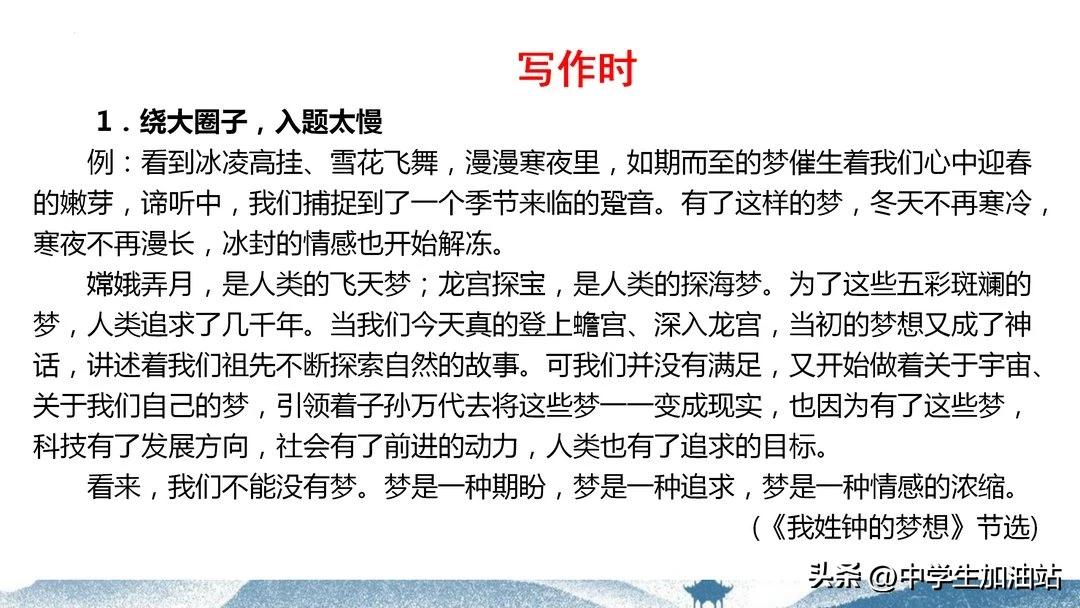 初中语文“考场作文”容易出现的问题及写作思路和步骤! 初中语文“考场作文”易现问题有:审题不清、结构混乱、语言平淡。为提升作文水平,需明确写作思路与步骤。首先,认真审题,确定主题;其次,构思框架,合理安排段落;再者,运用丰富词汇和修辞手法,使语言生动有力;最后,仔细检查,修正错误。 遵循此步骤,作文定能脱颖而出,赢得老师青睐。同学们,务必重视作文训练,不断提升自己的写作水平! 【左上角,点击我的“头像”,进入主页,有电子版获取方式】