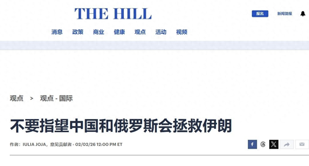 2日,美国《国会山报》发文称伊朗“已经摇摇欲坠”,不要指望中俄会出手相救。