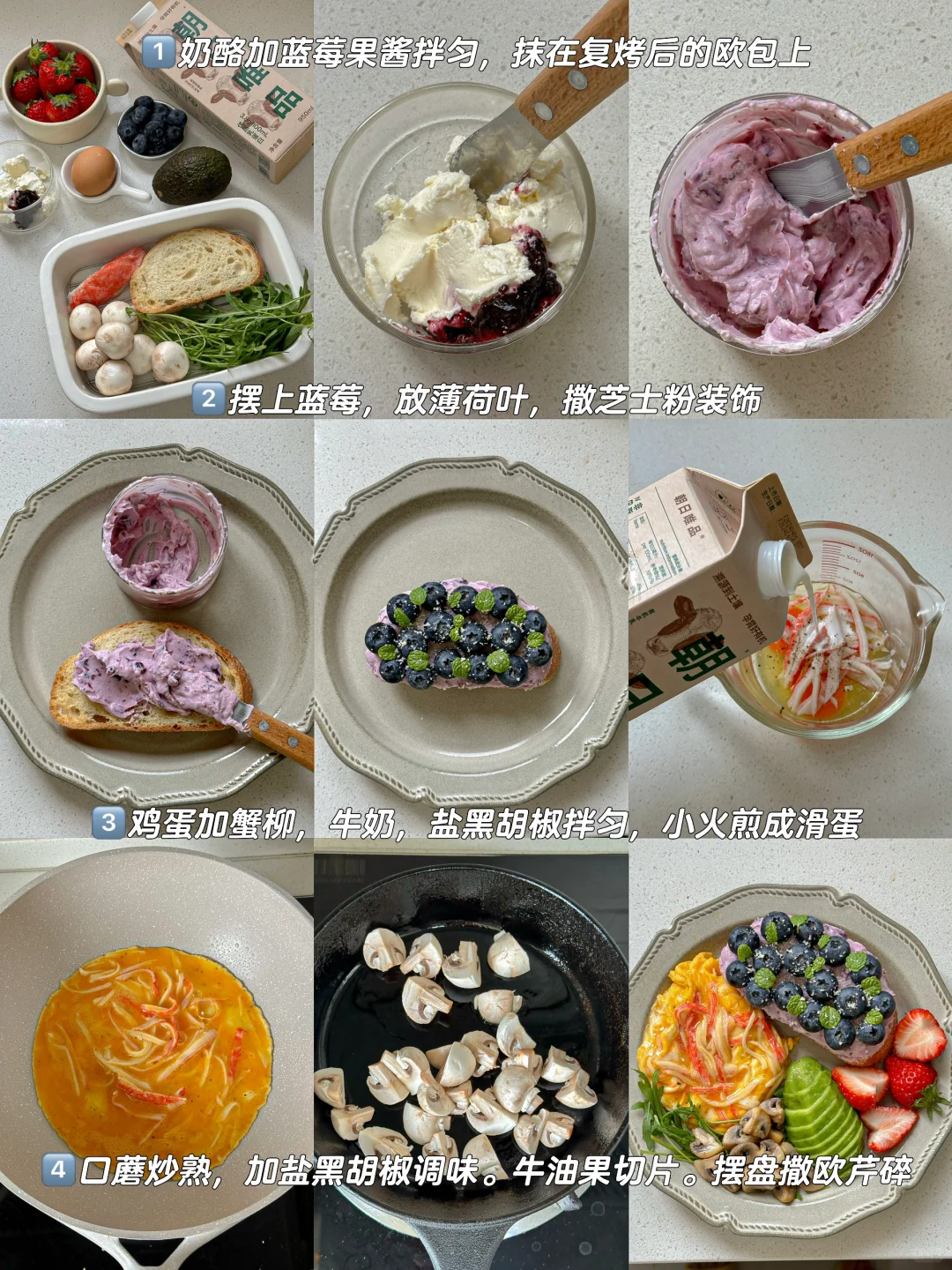欧包|蓝莓果酱|奶酪|蓝莓|薄荷|无菌蛋|蟹柳|牛油果|白蘑菇|芝麻菜|草莓|有机牛奶