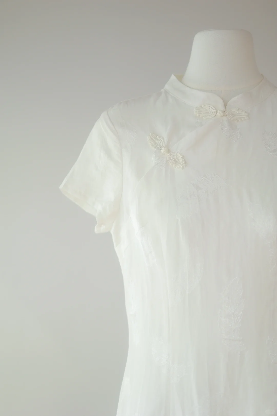 光影渐变下,羽毛提花光泽真的很美,很高级 4️⃣码/合适的尺码穿着才舒服, 面料没有弹力,并且版型偏修身,尽量对照身材维度参考尺码表哦~ 富有层次的提花面料国风韵味 -