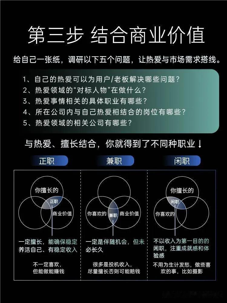 如何把兴趣爱好变成职业?分四步走!找到兴趣、特长、事业的重合部分,然后合理规划