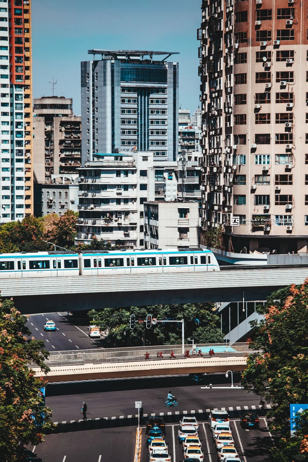 拍照很出片的创意园,向上的楼梯宛若通向空中。登上顶层天台,还可以俯瞰汉口老城区的市景。大智路、京汉大道天桥、地铁一号线三者同框组成了很有立体感的画面。