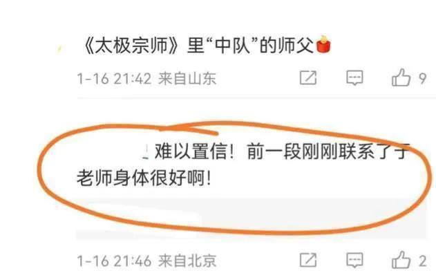 好友透露,3周前联系于海老师,他的状态还很好,常年习武的他比同龄人强壮很多,即使81岁每天也不忘锻炼。
