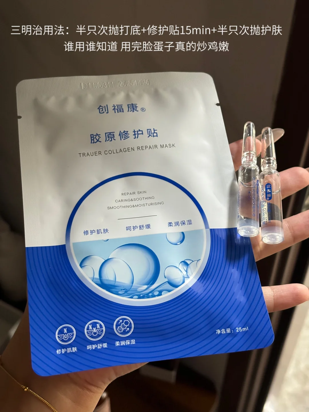 再分享一个我脸红红或者超级缺水的时候爱用的小方法:半只次抛+修护贴+后续再用半只次抛护肤!超级补水舒缓,用完脸水当当的!!!