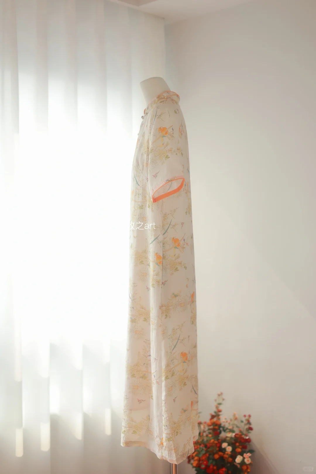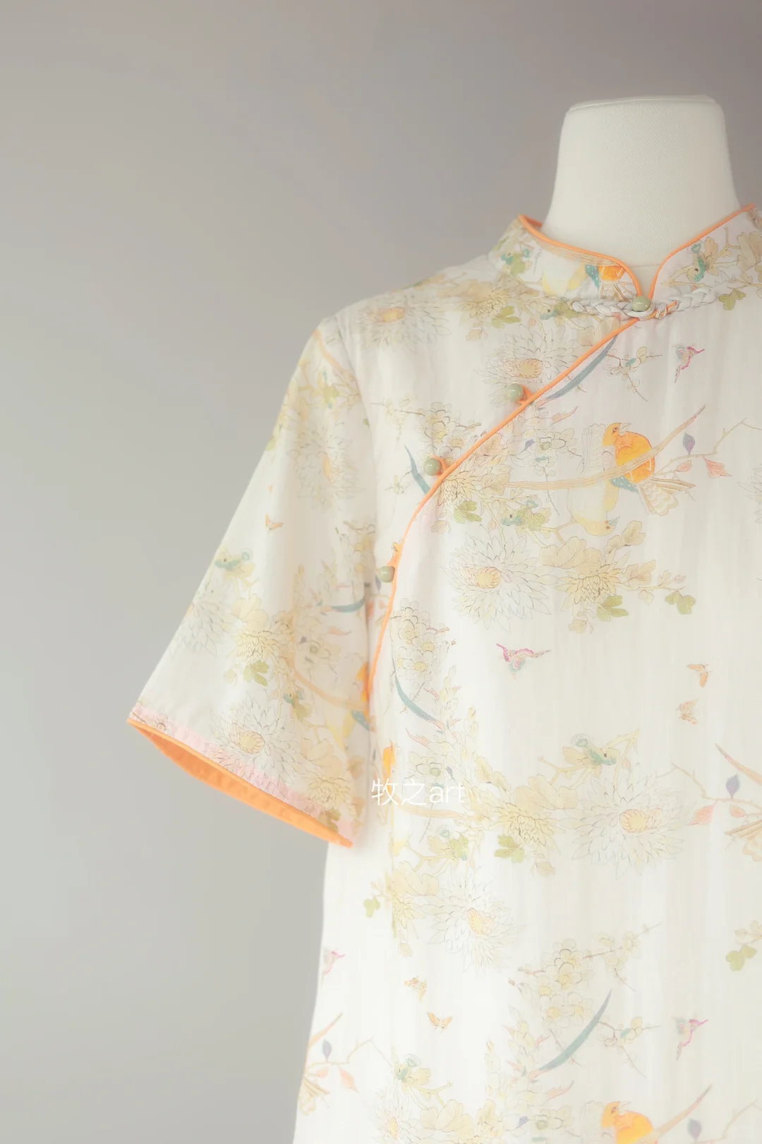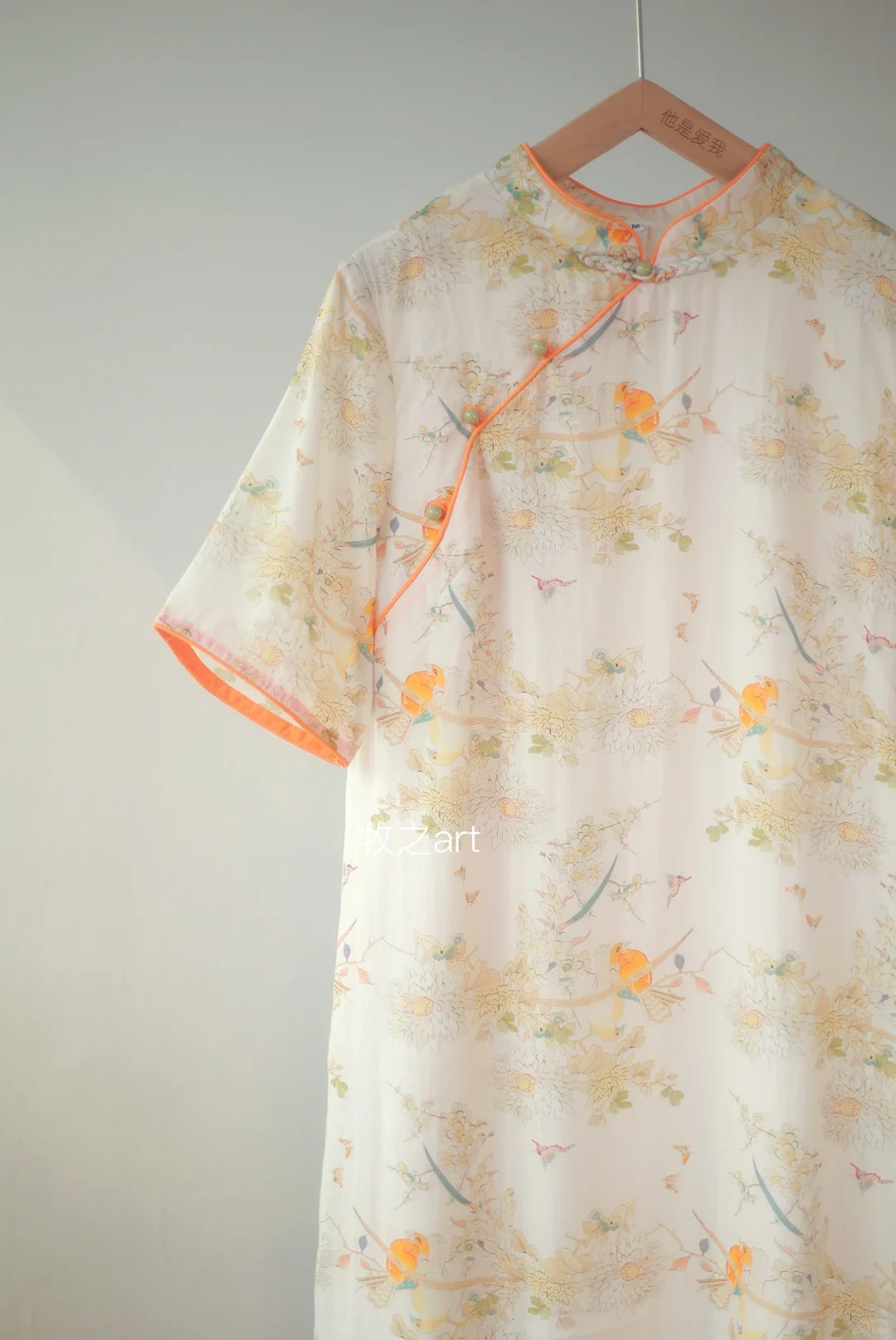 苎麻面料,有内衬不会透的~ 天然植物纤维,面料细腻透气 是寓意很好的喜鹊儿~ 国风改良旗袍,宽松的版型非常遮肉, 4️⃣码/合适的码数穿着才舒服 -