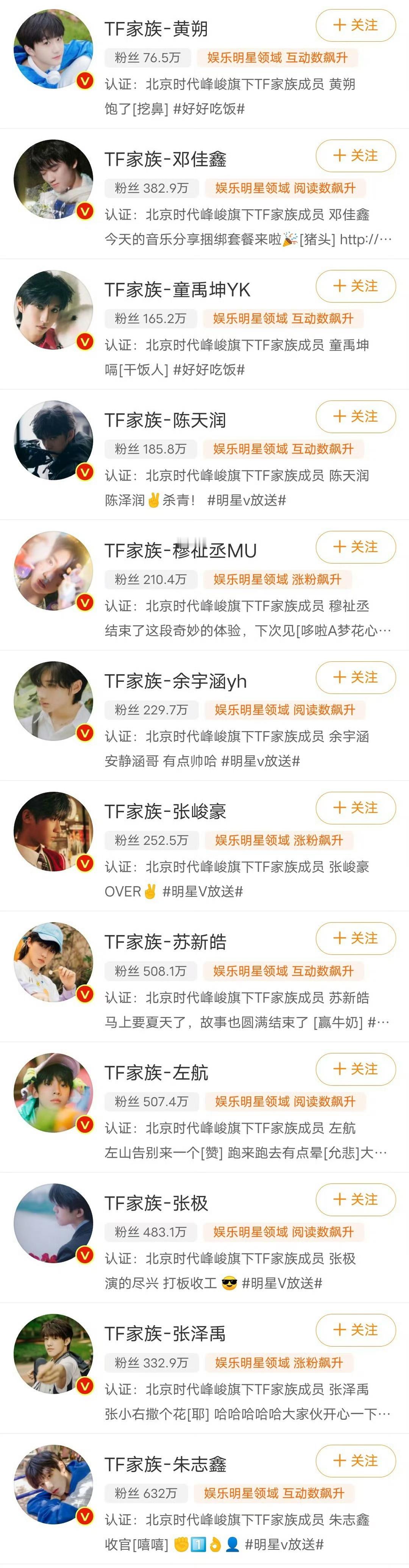 TF三代开通fan club官博前三关注顺位:朱志鑫、张泽禹、张极