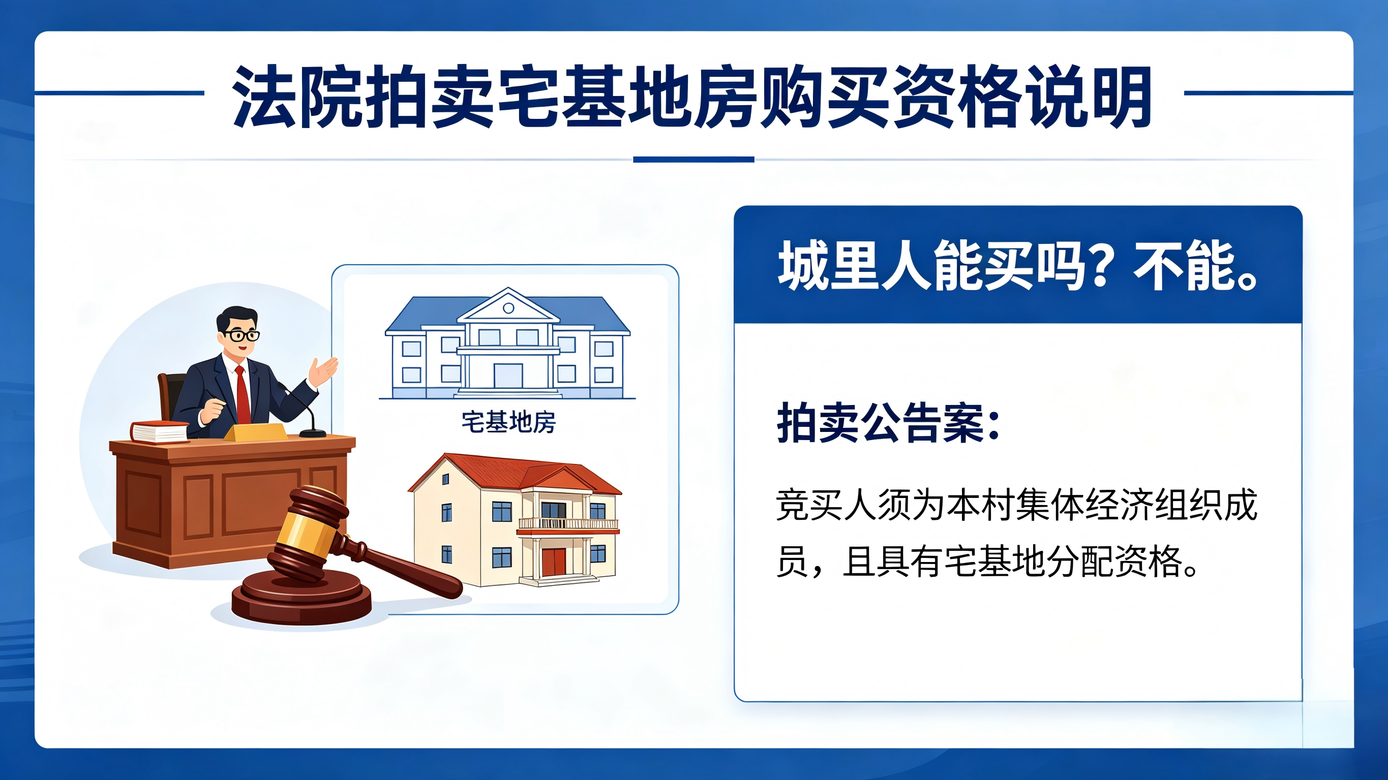 法院的拍卖公告上会写得明明白白:“竞买人须为本村集体经济组织成员,且具有宅基地分配资格。”翻译一下:只有这个村的人能买,还得是村里同意给你批地的。