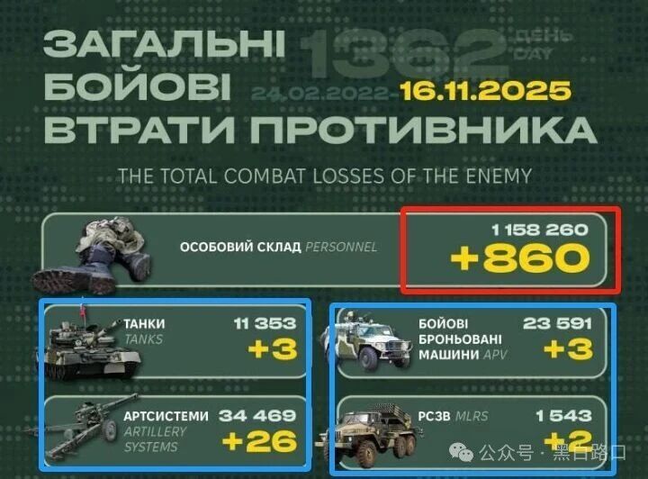 过去24小时,前线发生176次战斗,俄军损失新增860人,代价继续走高.