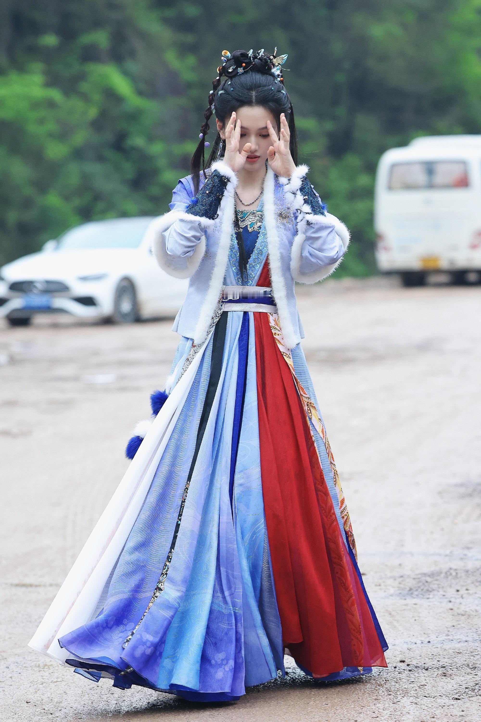 沈羽洁朝雪录路透生图,感觉衣服有点不走心