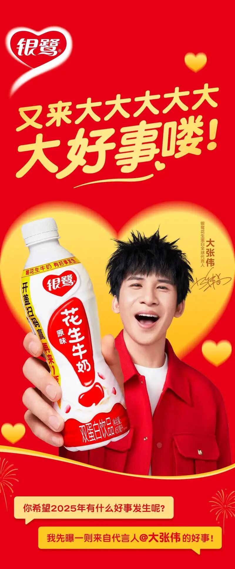 2024年底,银鹭高调宣布与华与华达成战略合作,推出全新品牌口号"喝花生牛奶,有好事发生"。这场营销战役席卷各大平台,春节期间曝光量突破55亿次,抖音挑战赛参与人数创下纪录。