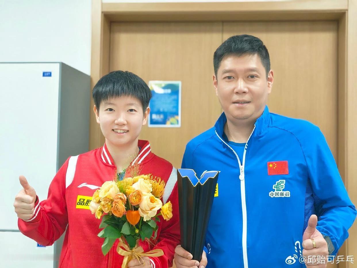 孙颖莎和邱贻可教练的冠军赛后合影,感觉两人一起无敌了。莎莎是一个懂得感恩的的小女孩 遇到邱贻可也是他一生中最幸运的事情。师徒二人携手共进,共赴巴黎!贻定颖定赢#恭喜孙颖莎冠军# #孙颖莎再夺冠# #春日生活打卡季#