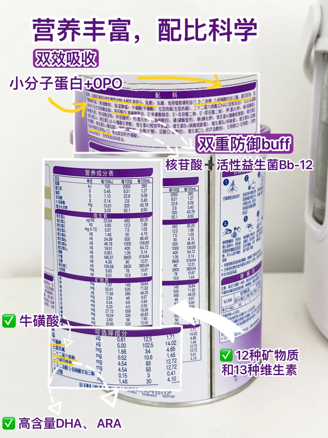 在助力宝宝肚肚更好吸收这方面更是直接封神,不仅有小分子蛋白,轻松hold住蛋白营养,更是加入了明星成分 OPO,促进关键营养吸收