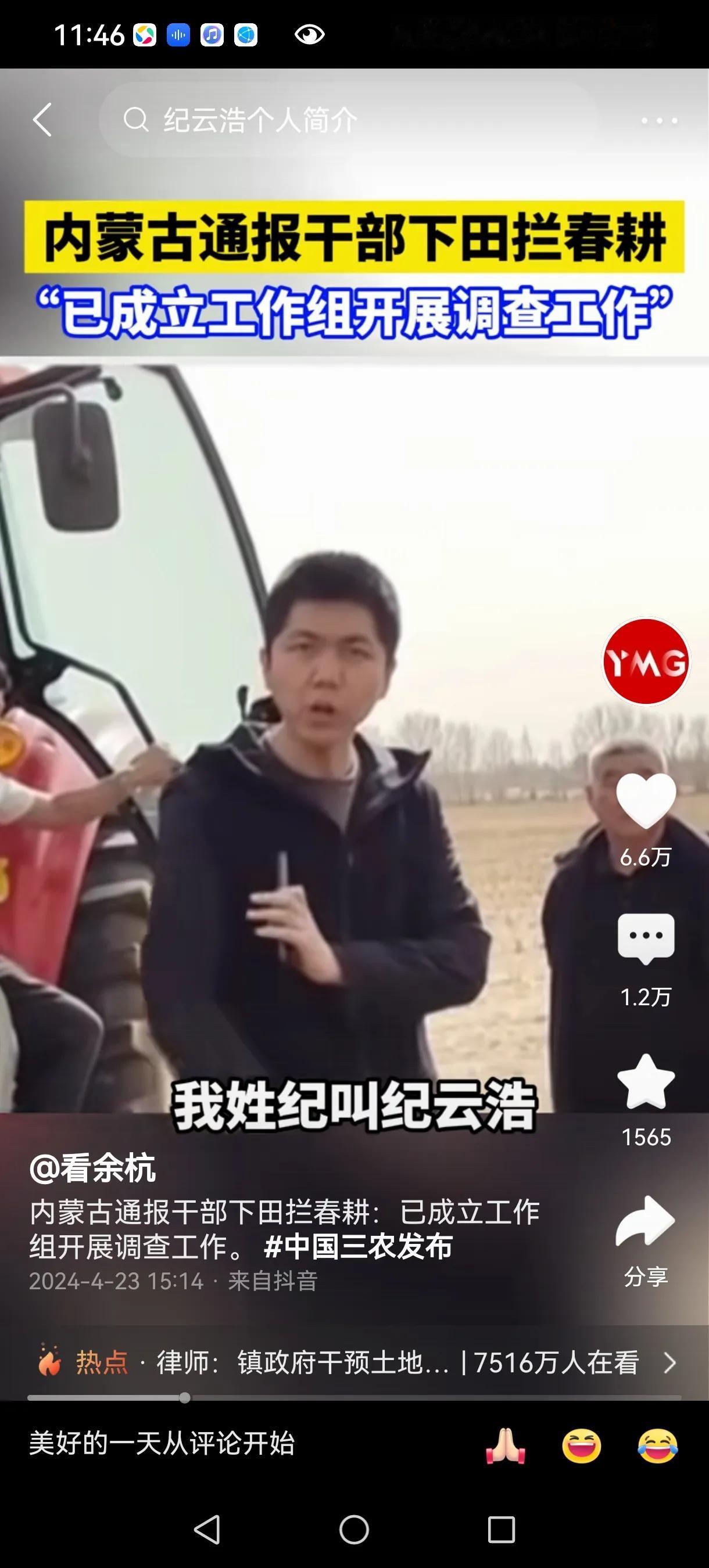 内蒙古干部阻拦春耕一事大家看懂了吗?不要跟着一些不明所以的自媒体瞎起哄了。了解下真相吧。 首先说下,镇党委副书记纪云浩被免职了。原因不是阻拦春耕,而是因为处置问题的态度蛮横言语不当。 看看开鲁县给出的通报吧,新增耕地种植是要缴纳费用的,一部分交了,一部分没交,交了费用的这一部分心理不平衡。是这一部分人在阻挠春耕。而纪云浩作为镇党委副书记,来处理这个问题。“我告诉你,这个地不属于你”,没毛病啊,因为这部分没缴纳新增耕地的费用,确实不属于他们的。而他们非得要种,那不就是哄抢集体土地吗?没点真事,换了哪一个领导干部也不敢那么硬气的说话吧。 纪云浩问题就出在处理问题的方式方法过于僵硬,本来是正常的管理,最后被录了视频,引起了恶劣的社会影响。 现在的视频随便发,涉及官和民的往往一边倒,不去探究真相,实在可怕。 大家觉得是个什么情况呢?