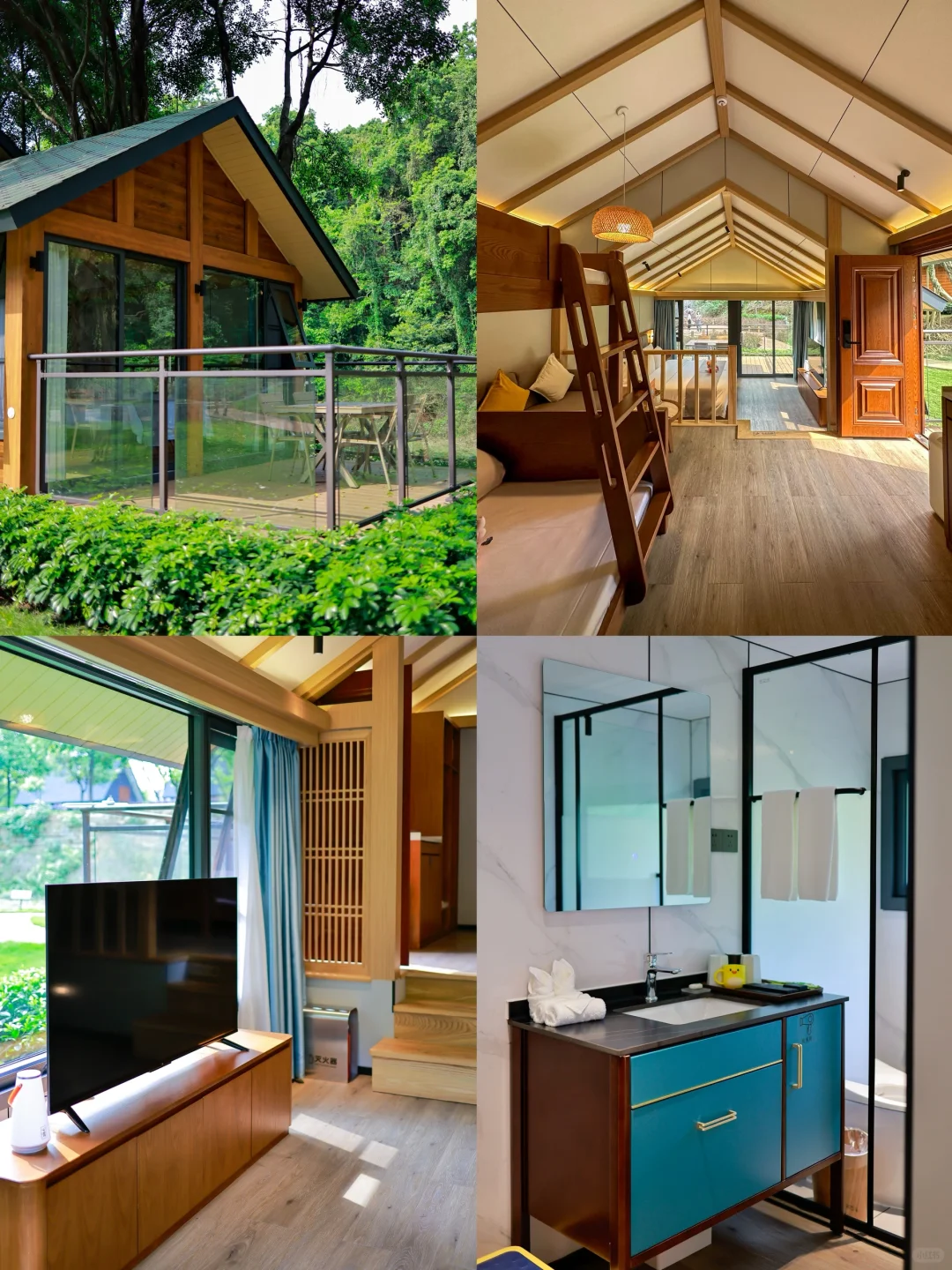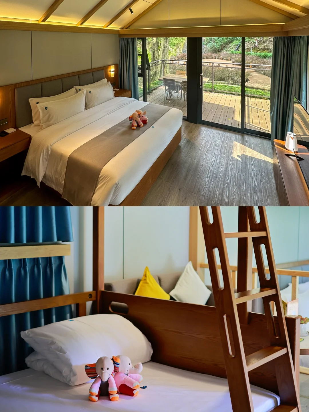 🌟我们入住的听泉亲子房也是超级有特色的。客房内有一张大床房,一张下大上小的高低床,4大1小入住都能安排的妥妥当当。