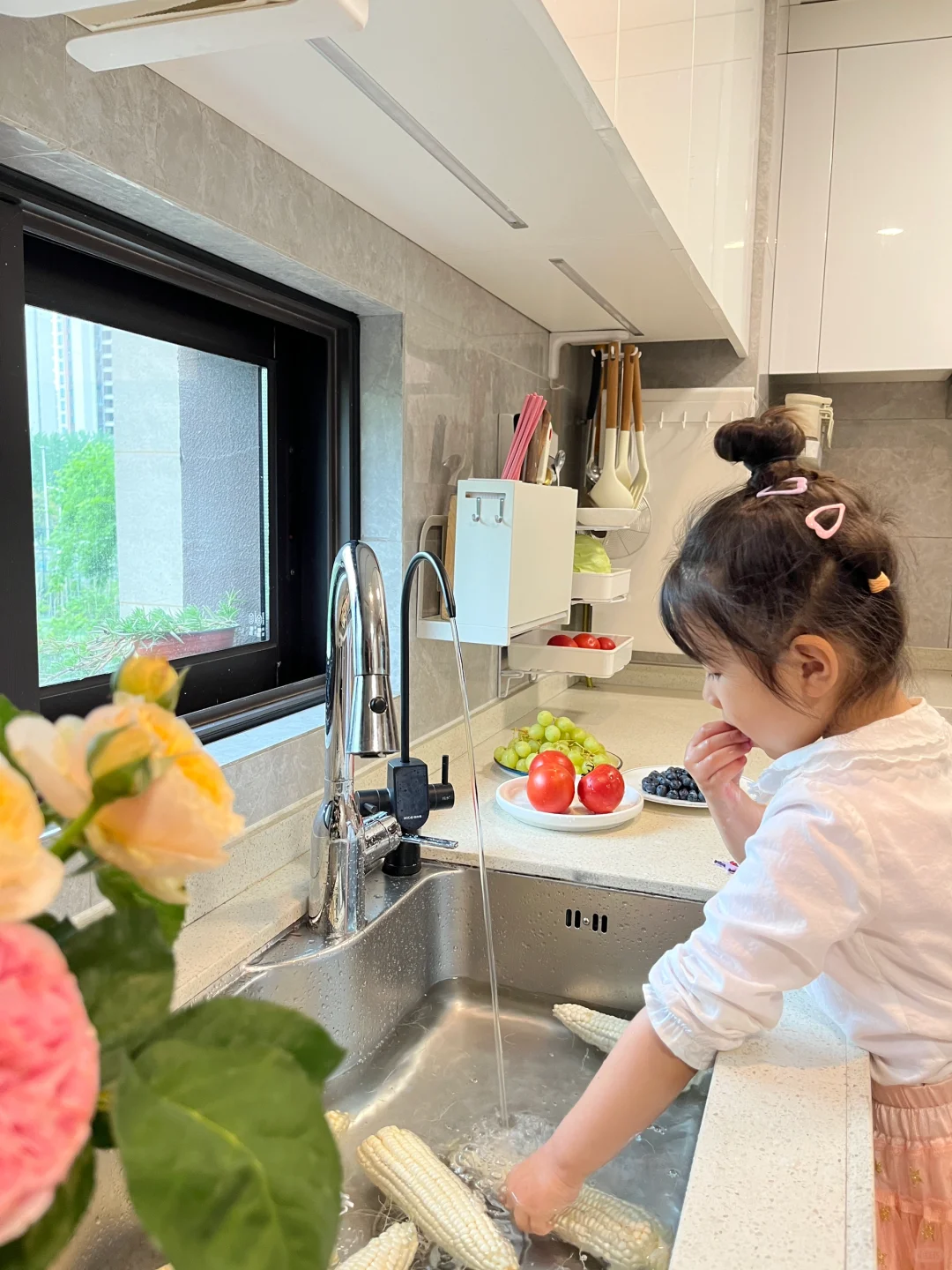 全时0陈水的设计也太戳我心巴了❤️,第一杯水就能放心大口饮用,出水量大的同时,也不浪费水资源,几秒搞定满满一大杯💦女儿洗水果直接边洗边吃😋