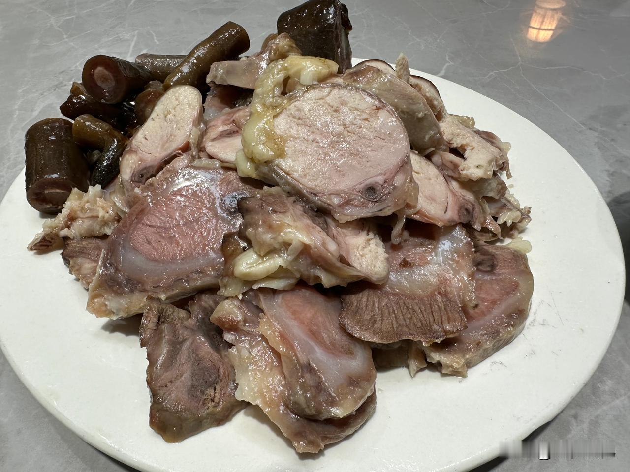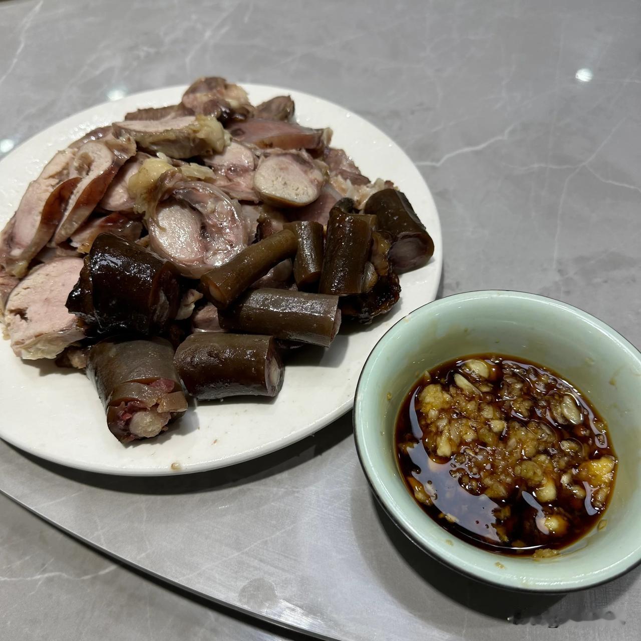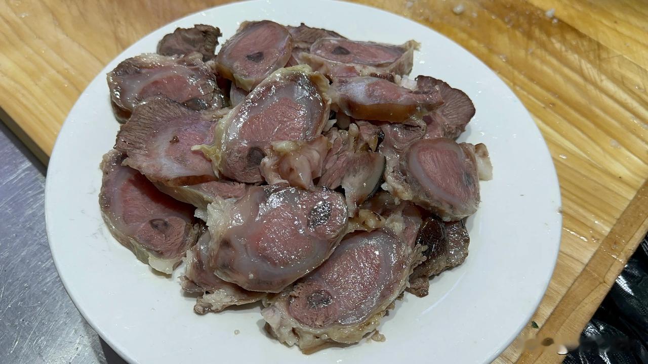 煮熟的驴肉切成片,口感细腻柔嫩,蘸着蒜泥吃是真香![吐舌] 驴肉汤也好喝,补气养血!