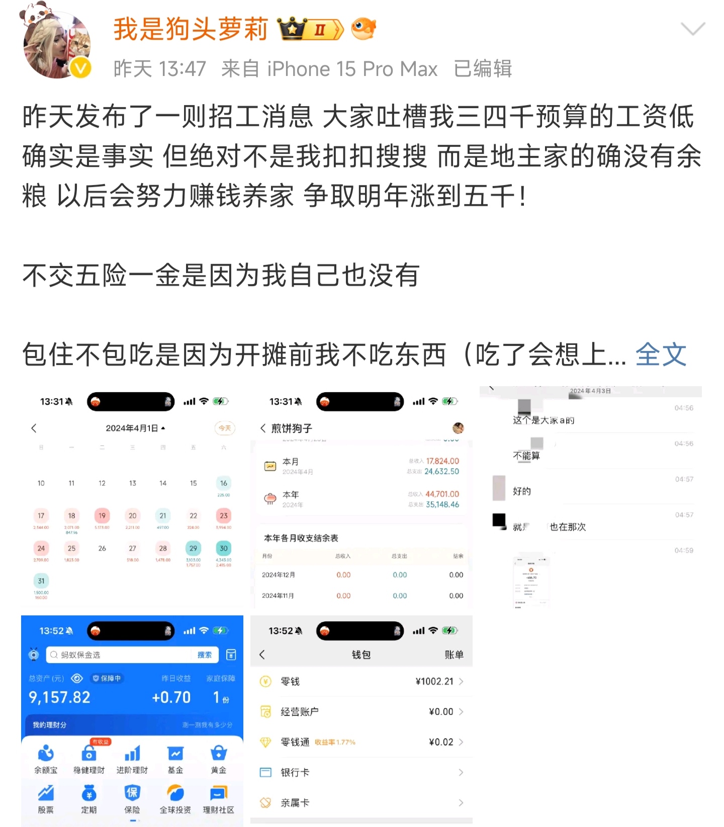 知名女网红“狗头萝莉”因招聘帮工引发争议,网友对其薪资待遇表示不满。尽管狗头萝莉