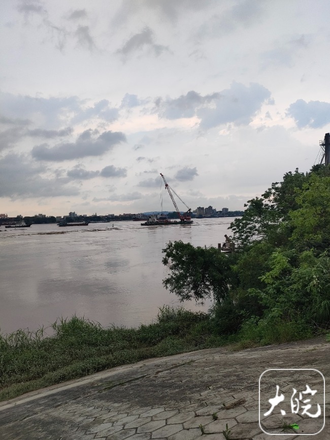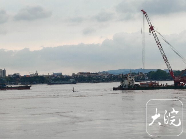 25日上午9点多,大皖新闻记者在江门鹤山市西江一侧看到,抢滩不成功沉没的海船疑似桅杆状物露出江面,附近停泊有搜救和打捞船只,打捞船只上有大型机械。大皖新闻记者在现场注意到,西江洪水未退,江水顺流而下流速明显,给沉船打捞工作带来困难,给救援增加了难度。