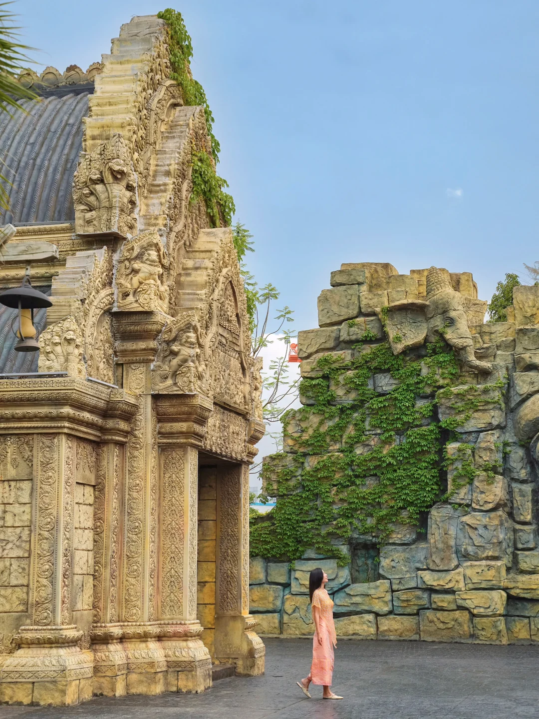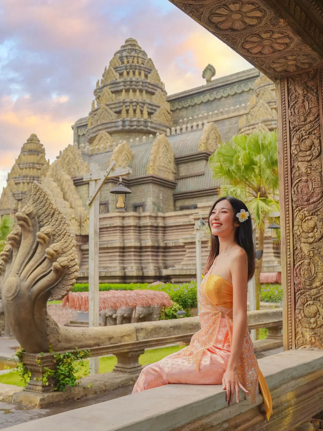 园区里有好几家东南亚服装出租的,款式真的很多,衣服妆造弄一整套,拍照真的美美哒!