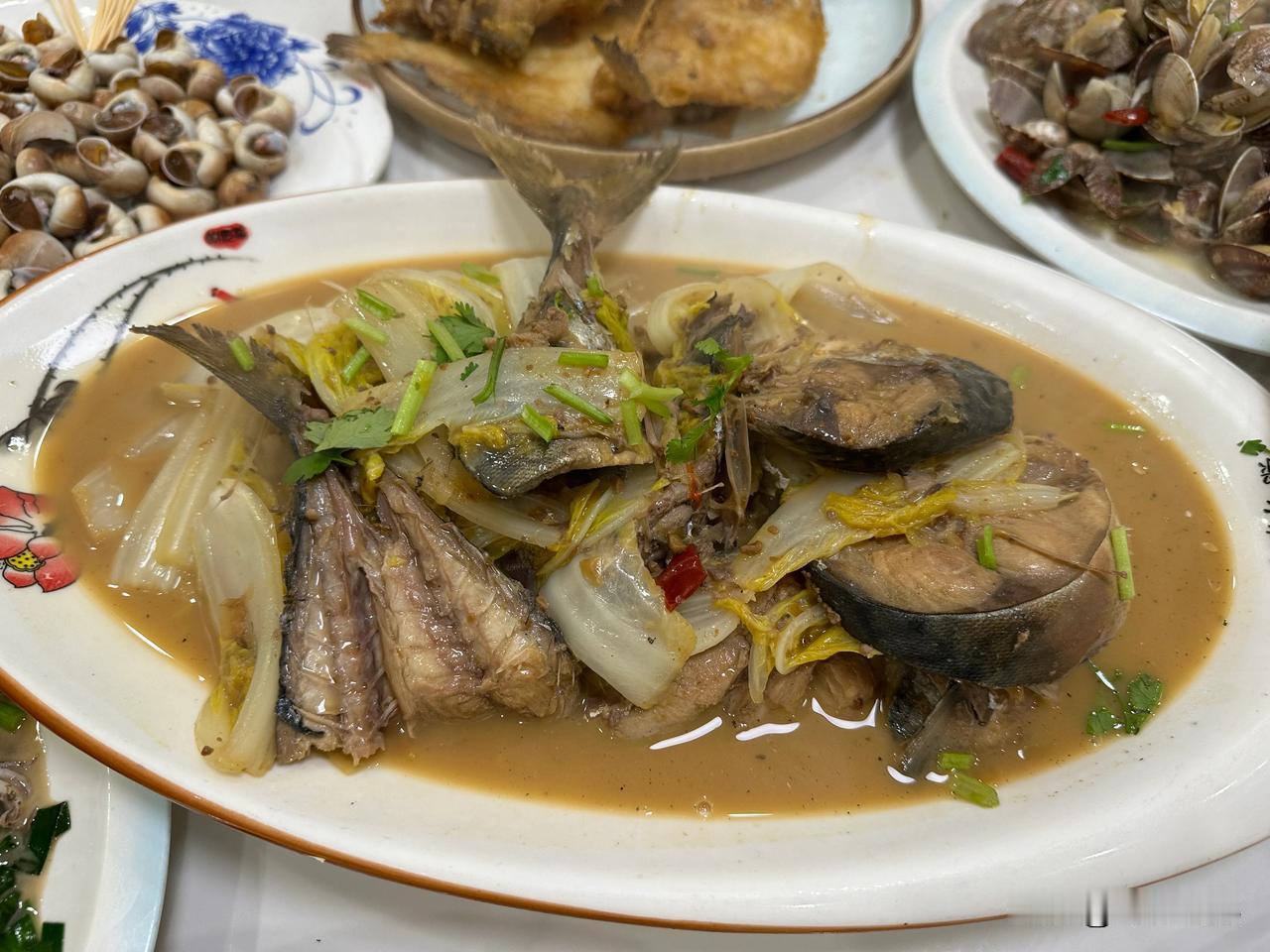 推荐大家必点:韭菜炒乌贼🦑、炸高眼鱼、红烧鲅鱼、炖安康鱼、鲅鱼馅的水饺…..那叫一个美味呀![吐舌][憨笑]