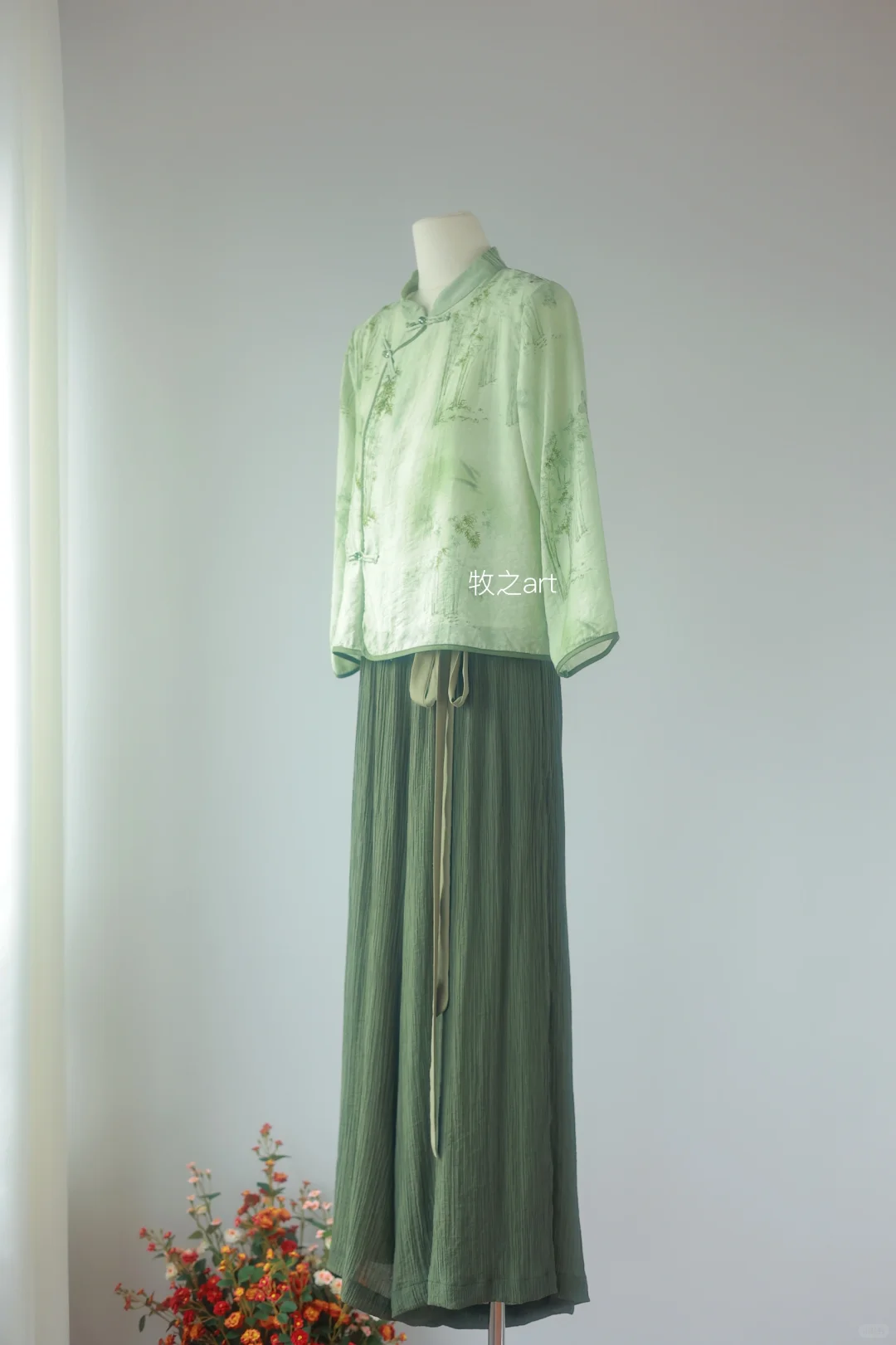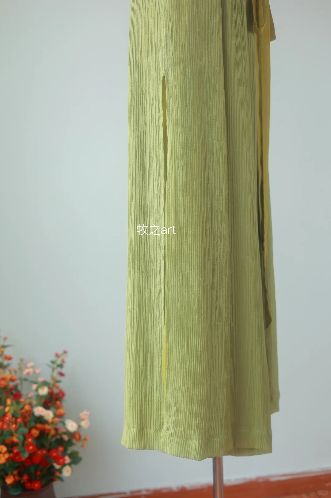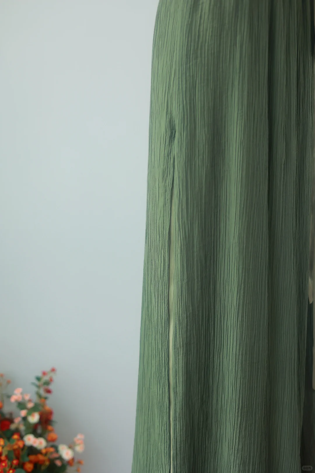 这两个绿色都好看! 纠结了很久,干脆都做货 同色系,但是感觉气质是完全不同的 两侧是开衩的,漏出里布,层叠飘逸~ 特别显腿直的直筒版型!并且拉高身材比例 -