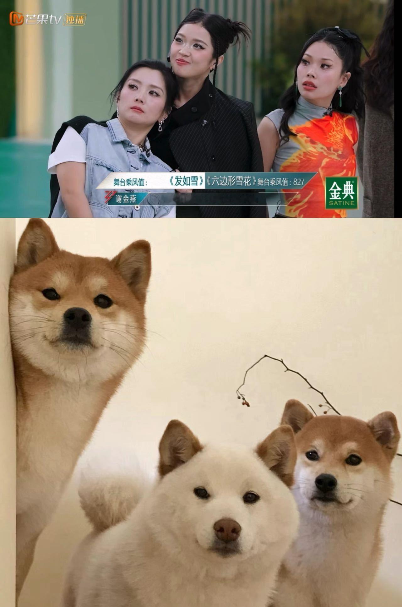 #何洁孙夏铃万妮达撞脸柴犬# 《六边形雪花》的舞台精彩纷呈,但三位姐姐何洁、孙夏铃、万妮达的台下互动也让人忍不住笑出声来。台上她们展现着专业的表演,流露出真实可爱的个性快乐➕倍!#孙夏铃震惊小狗#的表情包简直是我的新宠,让人无法抗拒❗️