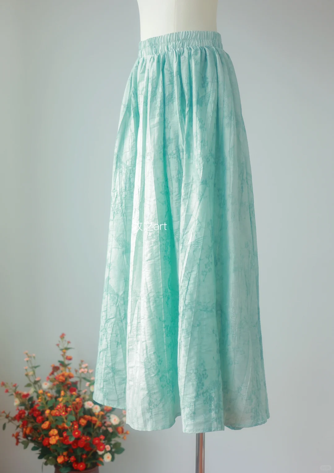 很特别的蓝色,清凉高级,不自觉安静下来 清新国风套装也太美了,不挑身材,上衣下摆荷叶边遮肉,像水波纹一样晕开 半裙是松紧腰头,穿脱方便 用料很足,不然腰部不会那么多碎褶,版型太遮肉了,很仙~ -