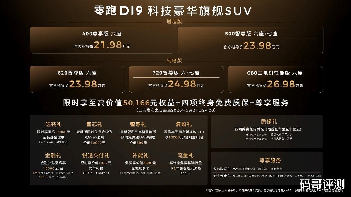 对于零跑品牌而言,D19的上市是其十年技术积淀的集中展现,是“科技普惠”理念的最高表达,标志着零跑完成了从主流市场到豪华旗舰市场的全面覆盖。未来,随着D19的陆续交付,我们有理由相信,它将成为2026年最炙手可热的全尺寸旗舰SUV,引领更多家庭开启“真旗舰、真豪华”的幸福出行新篇章。(完)
