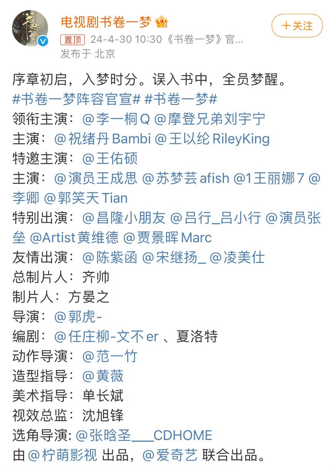 李一桐 刘宇宁《书卷一梦》全阵容官宣来了!整体班底蛮不错的,你们开始期待了吗[举手]?