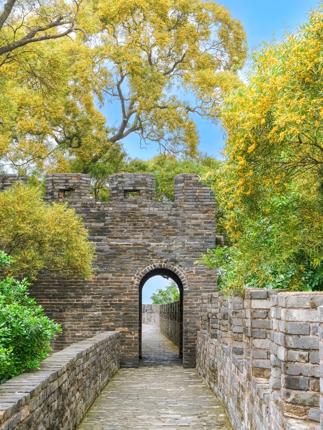 一定要走到城墙上打卡,站在门洞和古城墙内真的有点像北京的长城,还可以拍到远处的望海观音。