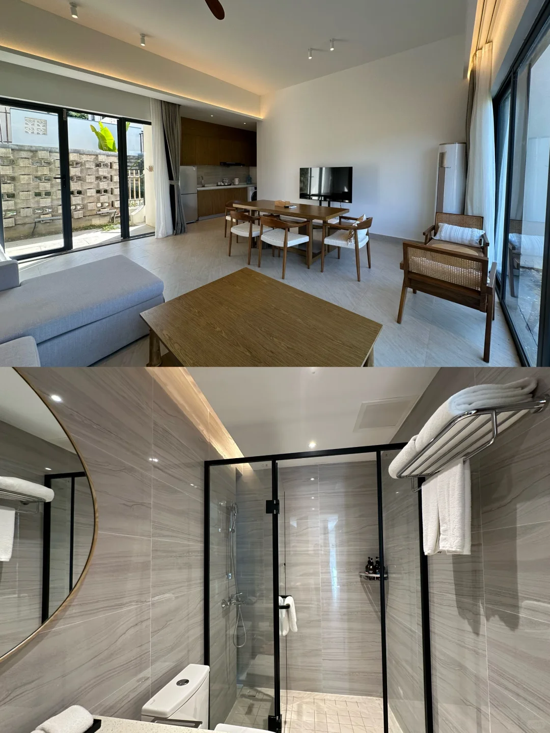 多人入住,选择了田园野奢双卧别墅,两室一厅两卫的配置可以4人同时入住。不仅拥有田园风景的私享小院,还有楼顶的私享露台,广东现在的天气到了晚上吹着微凉的风吃着零食聊着天,真的很chill。