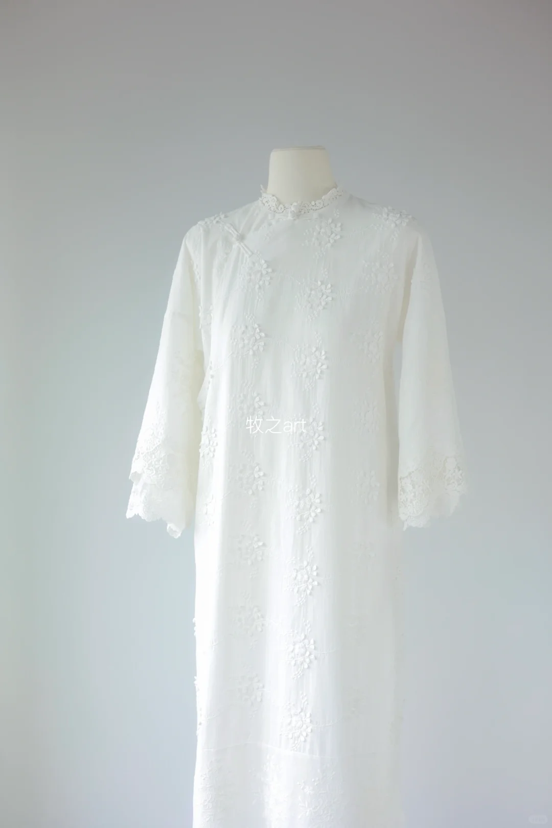 盘扣设计加立体刺绣,好精致啊 斜襟设计,中式感满满 袖口和裙摆是拼接蕾丝刺绣,仙仙的~ 上身温婉又气质 宽松的版型特别遮肉 现货库存~