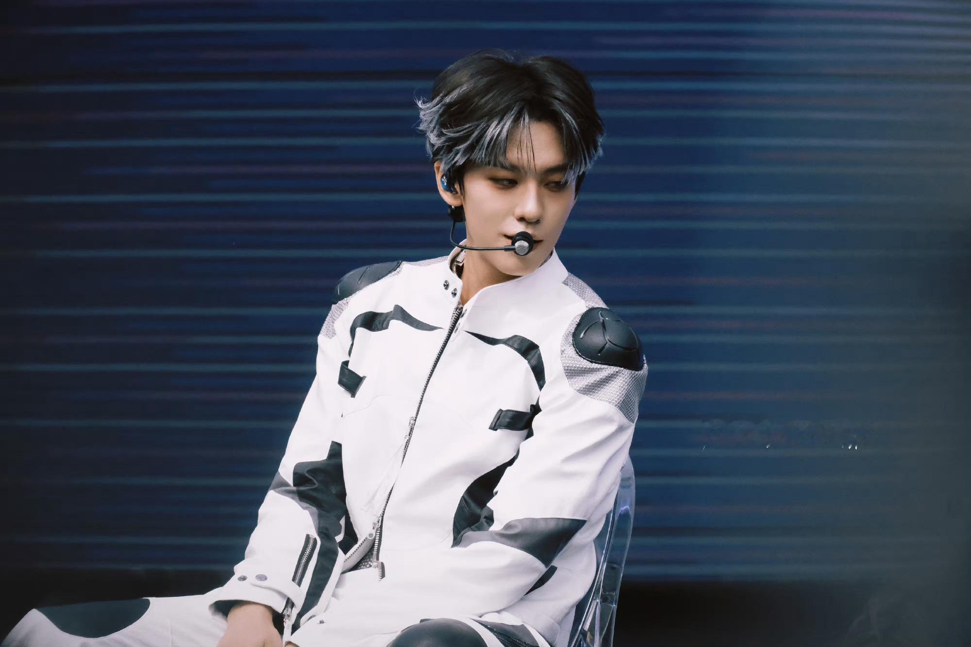 #余景天赛车服战损妆##余景天白色挑染#
