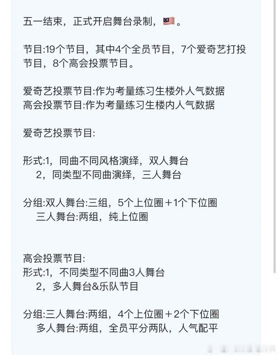 先导片录制完成,五一之后飞马来西亚录团综,爱奇艺投票➕高会投票考量练习生楼内外数据