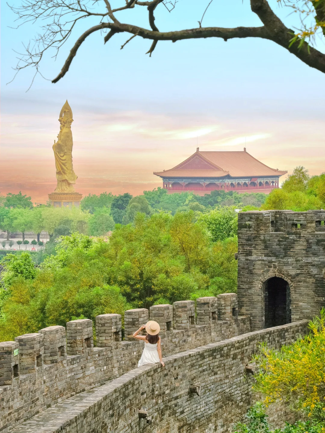 莲花成里也有长城的味道,除此以外还能到山顶看40米高的望海观音,