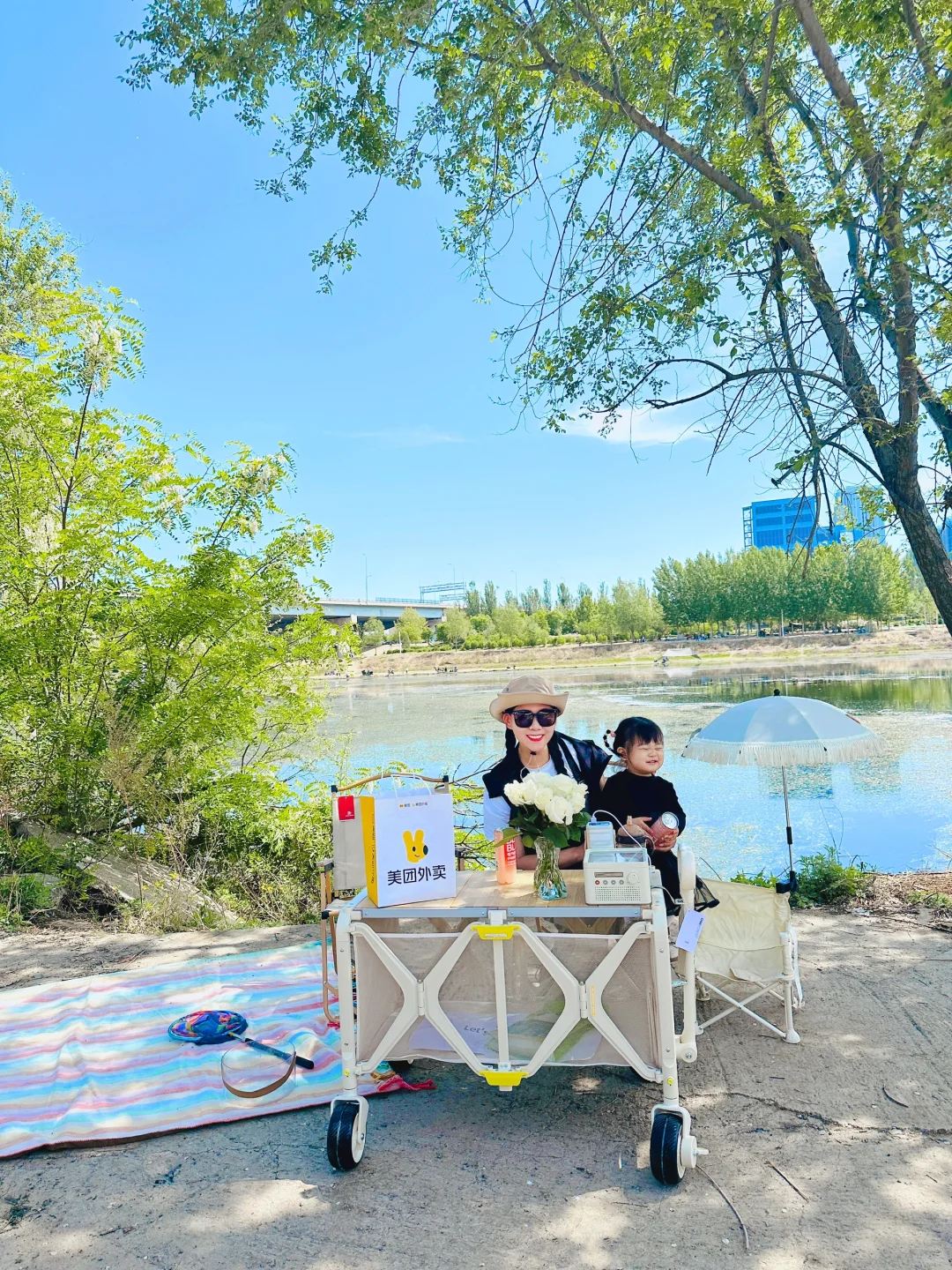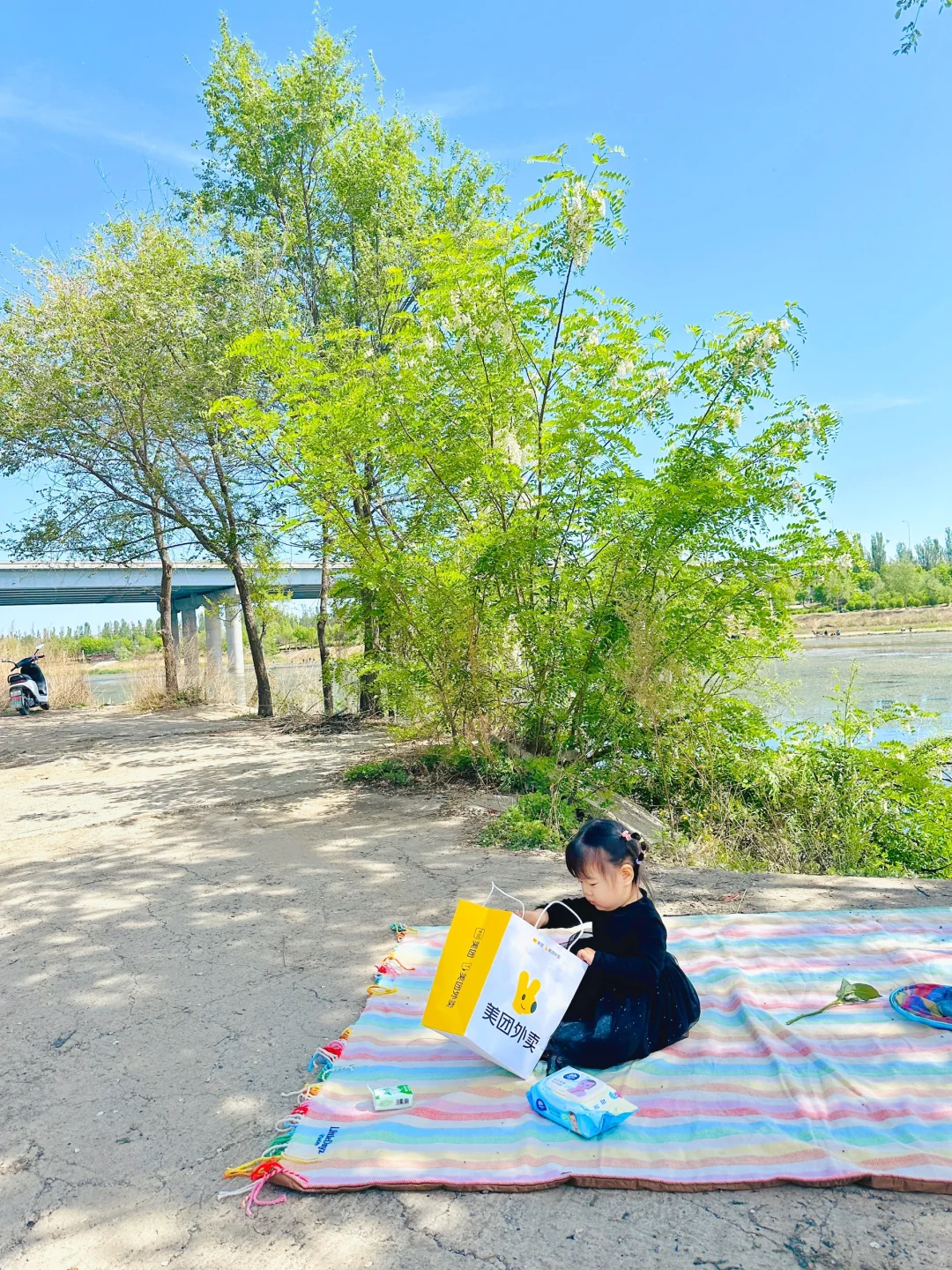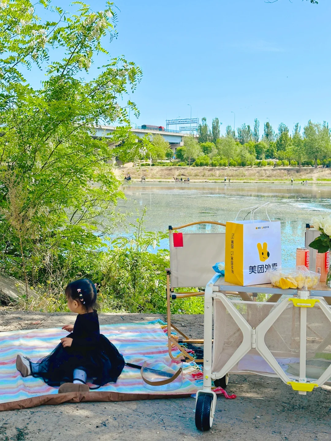 到目的地才发现忘记给宝宝带防潮垫、纸巾和垃圾袋了,还好美团外卖上可以买到,半小时配送到露营地点,真的太方便啦~