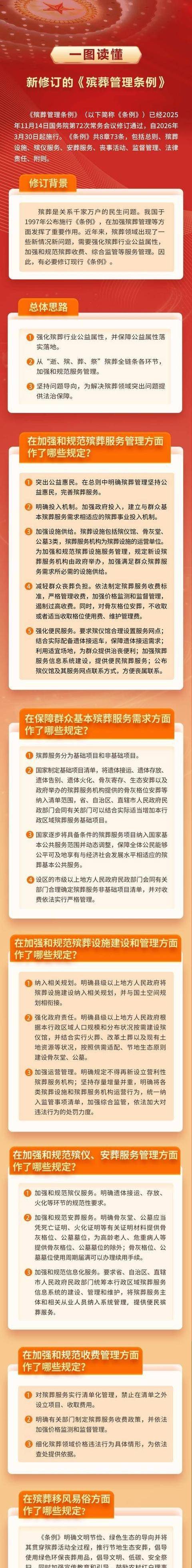 国家这次通过国务院令第824号公布了修订后的殡葬管理条例,自3月30日起在全国统一施行。这次修订是1997年原条例发布后的第二次调整,2012年有过第一次修改,现在条例扩展到8章73条,内容覆盖从总则到法律责任的各个环节。修订工作主要围绕强化公益属性、明确管理要求、规范服务流程这些方面展开,把殡葬事业定位为重要的民生领域。