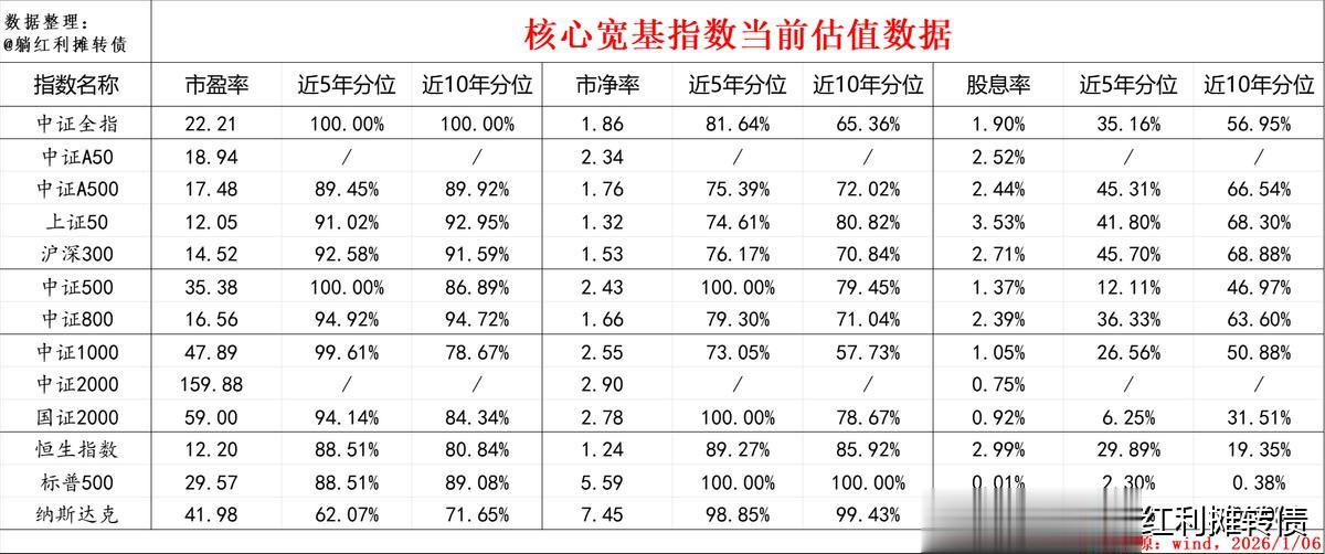 关于市场上的宽基类指数,躺师傅个人长期密切追踪的主要有代表A股大盘风格的上证50、中证A50、中证A500、沪深300、中证800指数,代表A股中盘风格的中证500指数、代表A股小微盘风格的中证1000、中证2000和国证2000指数,代表港股的恒生指数以及代表美股的标普500和纳斯达克指数。