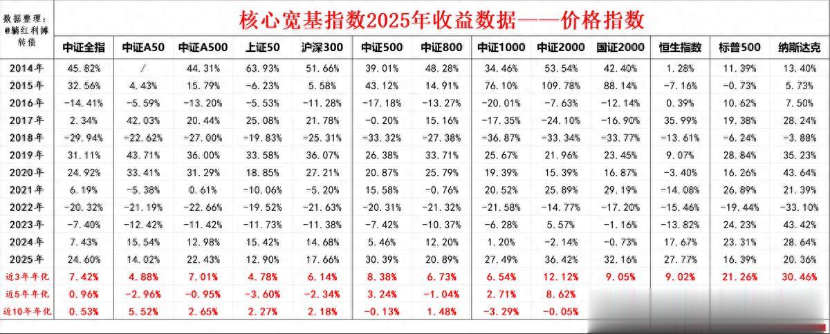 接下来一起来看看这13只宽基指数在2025年的表现吧~