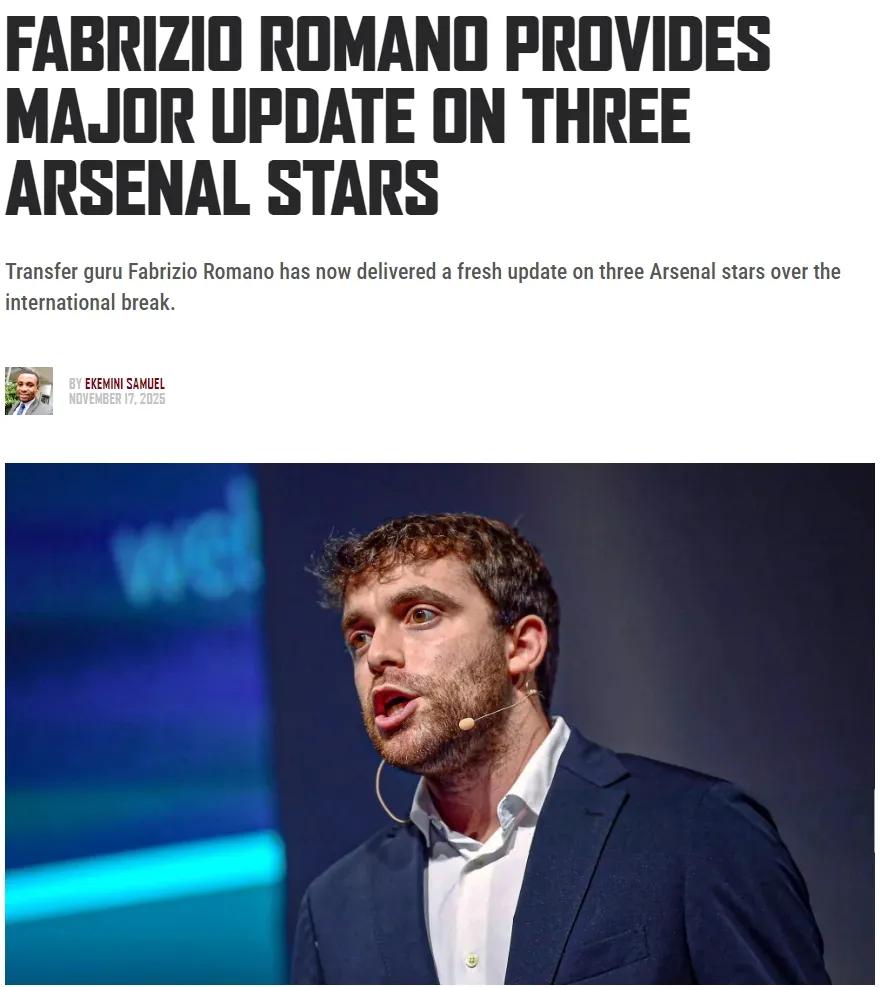 罗马诺在最近的YouTube频道中谈到了萨卡、廷贝尔和赖斯的续约问题。