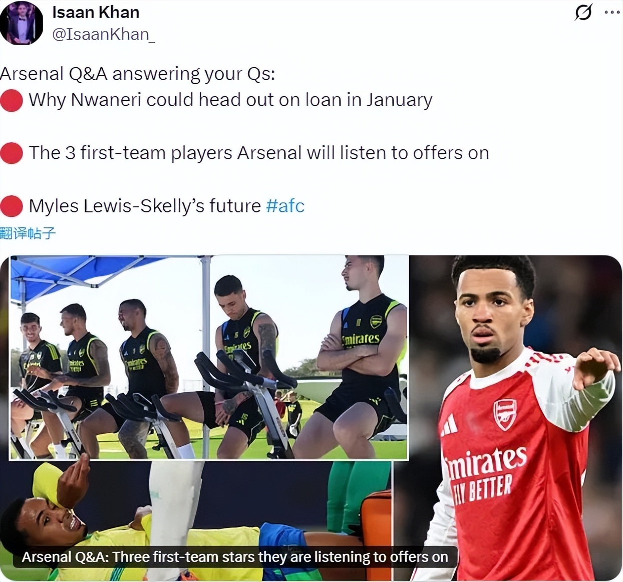 邮报阿森纳方面记者IK发文谈到了几名枪手的境况以及球队的伤病问题。