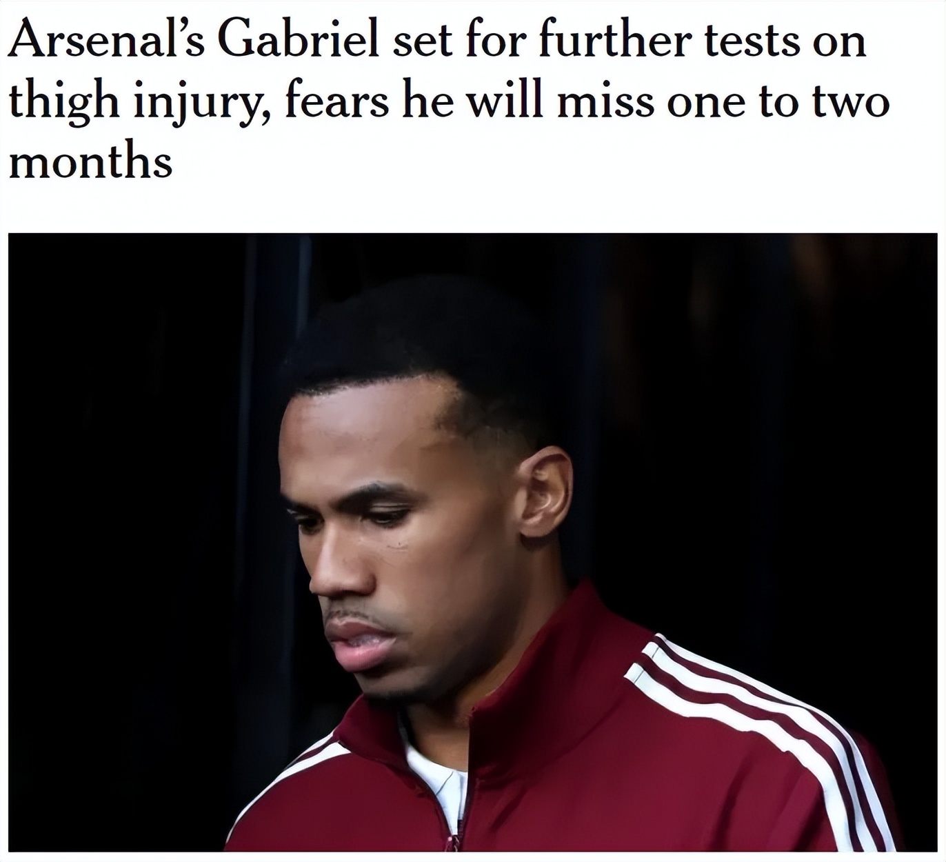 BBC记者SM发文,阿森纳即将获悉加布里埃尔大腿伤势的完整信息,但早期的担忧是,这名球星可能最少也要缺阵4周,消息源表示巴西人甚至可能要养伤至1月份。
