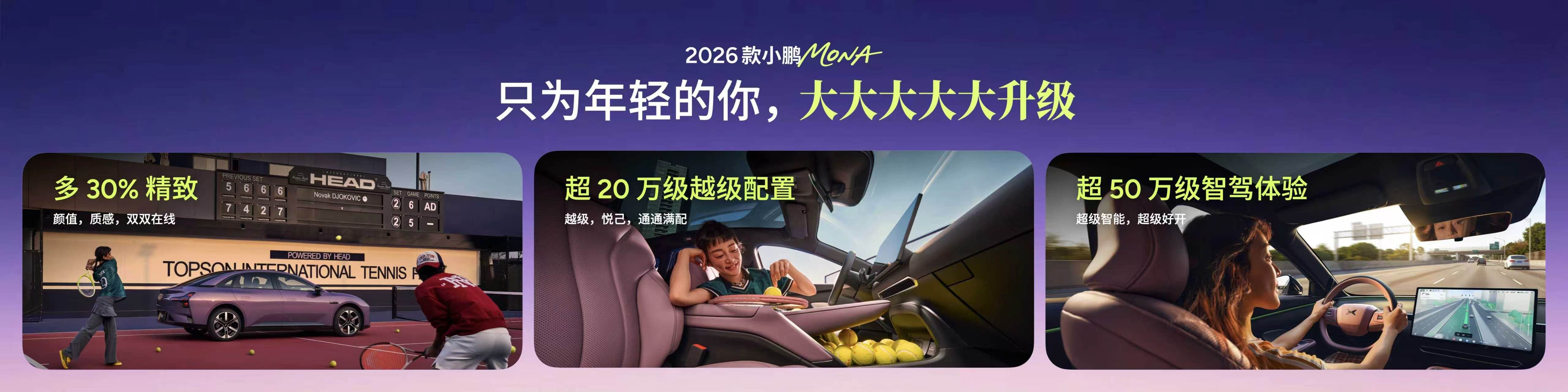 从上市至今,小鹏MONA系列凭借出色的产品力,赢得了众多用户的青睐。2026款小鹏MONA M03的焕新登场,不仅是对产品力的全方位打磨,更是对年轻用户需求的深度回应。它以11.98万元起的亲民价格,带来了超20万级的越级配置与超50万级的智驾体验。在这个充满活力的夜晚,2026款小鹏MONA M03不仅是一台车,更是一个信号:属于年轻人的智能纯电出行时代,已经全面到来。