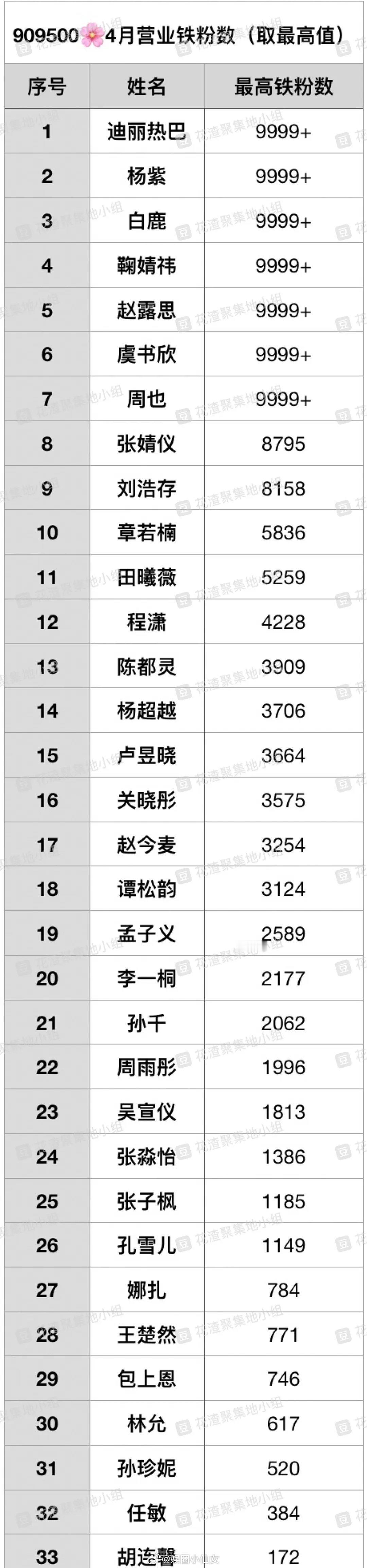🌸🌸四月铁粉值,周也比想象中高啊,撵上来了