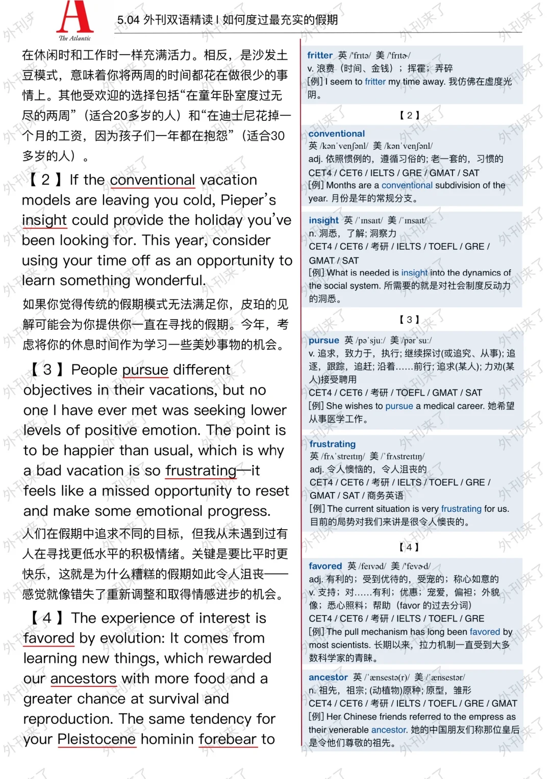🔥英语学习必备的外刊精读 ⭐选自The Atlantic ⭐每周会从原刊中选取多篇文章精读 🏆🏆重点单词⤵️ 🏅fulfilling 令人满足的 🏅exotic 异国风情的 🏅document 记录 🏅spectrum 范围 🏅fritter 浪费 🏅insight 了解 🏅frustrating 令人懊恼的 🏅ghnut 甜甜圈 🏅curriculum 课程